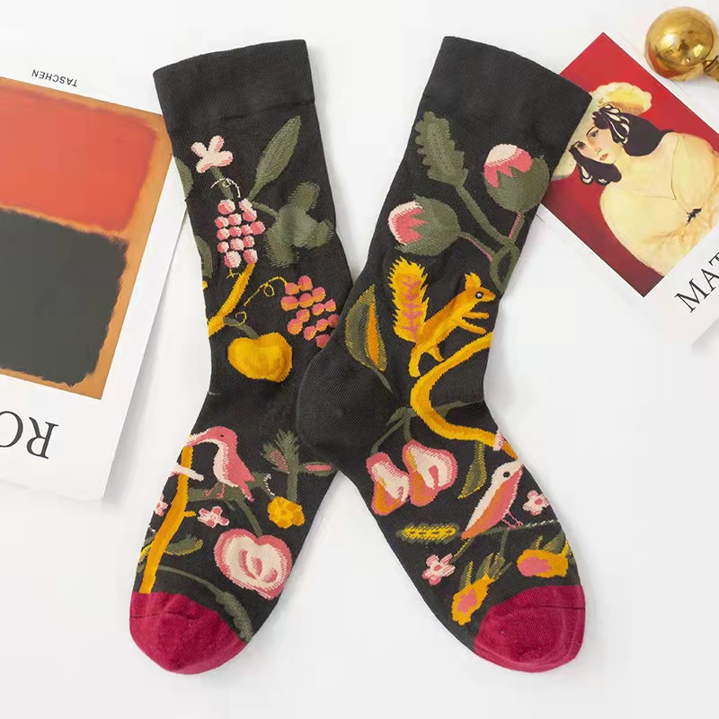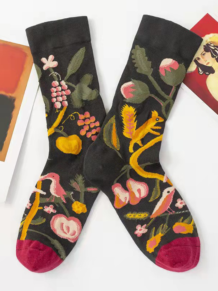 Wildflower Meadow Floral Embroidery Art Comfy Socks