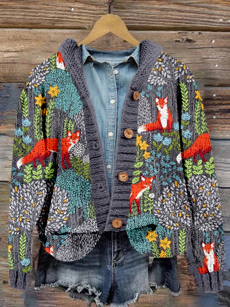 Fox in the Forest Graphic Comfy Hooded Cardigan
