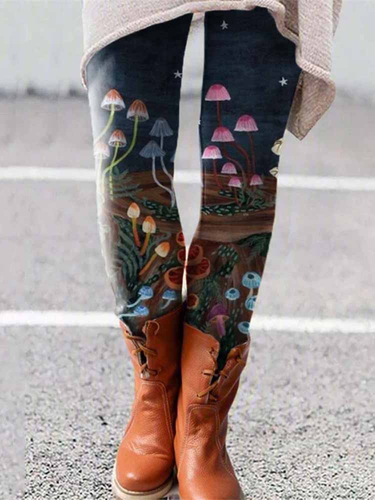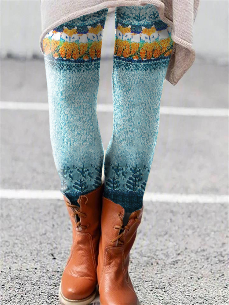 Vintage Fox Jacquard Contrast Knitted Leggings