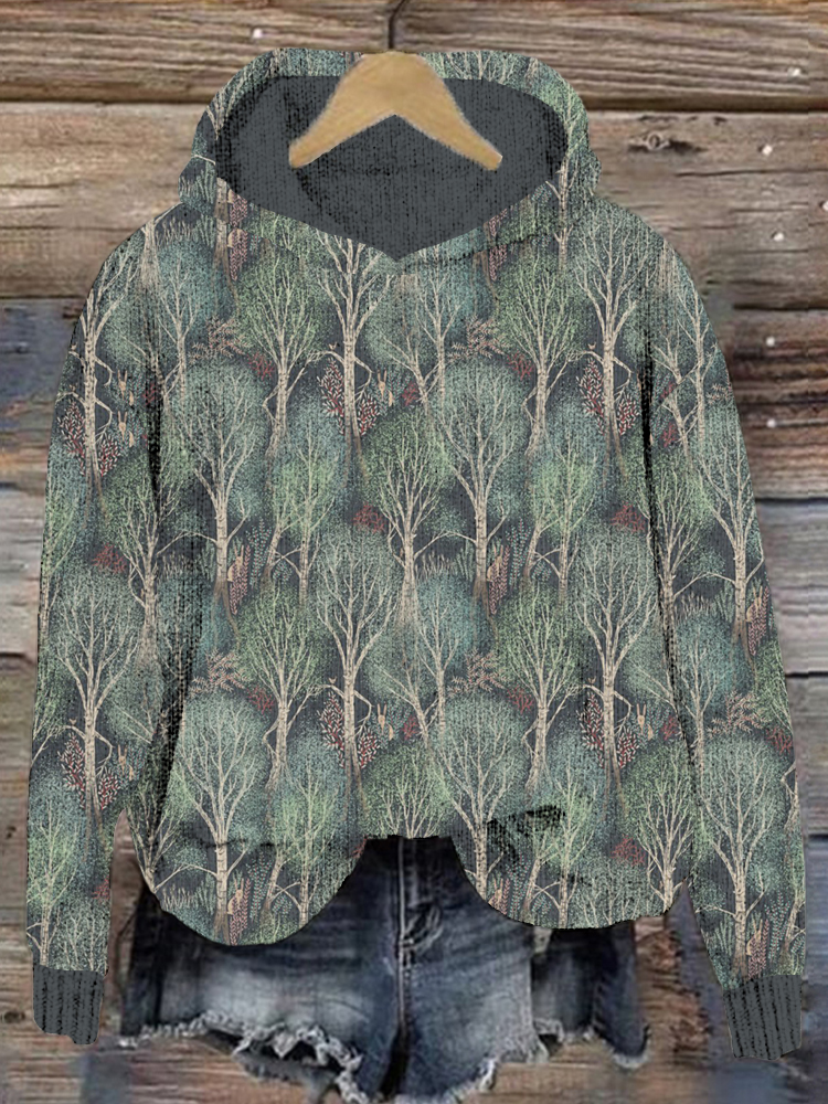 Whimsy Forest with Dancing Trees Graphic Cozy Knit Hoodie