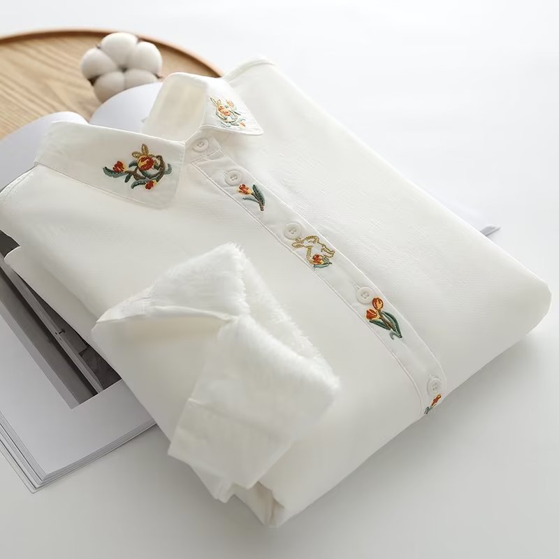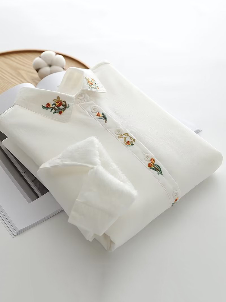 Vintage Forest Rabbit And Floral Embroidery Plush Insulation Comfy Shirt