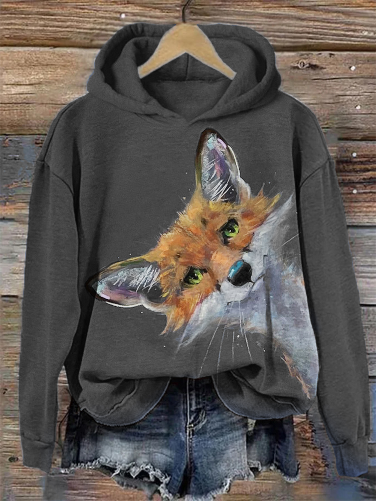 Fuzzy Peeking Fox Painting Cozy Hoodie