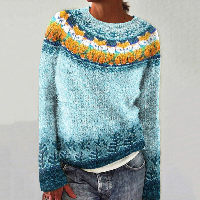 Vintage Fox Jacquard Christmas Crew Neck Sweater